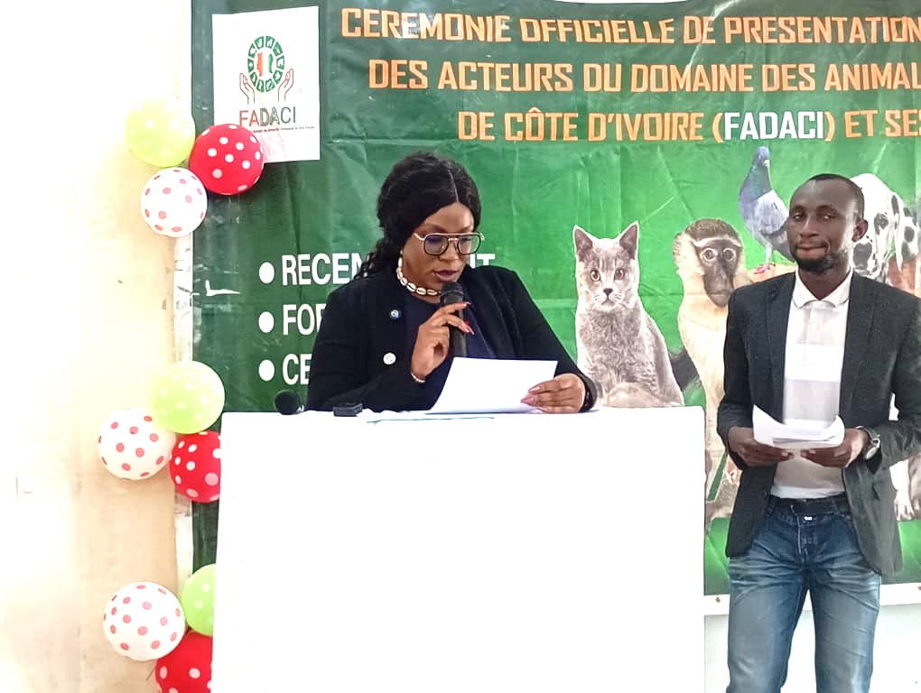 Portée sur les fonts baptismaux le 28 décembre 2024, la Fédération des Acteurs du Domaine des Animaux de Compagnie de Côte d’Ivoire (FADACI), dirigée par la dynamique présidente Annabelle Denise Adja Sidjé, a pour mission de promouvoir des pratiques durables et éthiques de la maltraitance animale, d’encourager l’innovation et la recherche, de former, de structurer et sensibiliser les communautés sur l’importance de la faune et de l’élevage pour l’équilibre de notre écosystème.